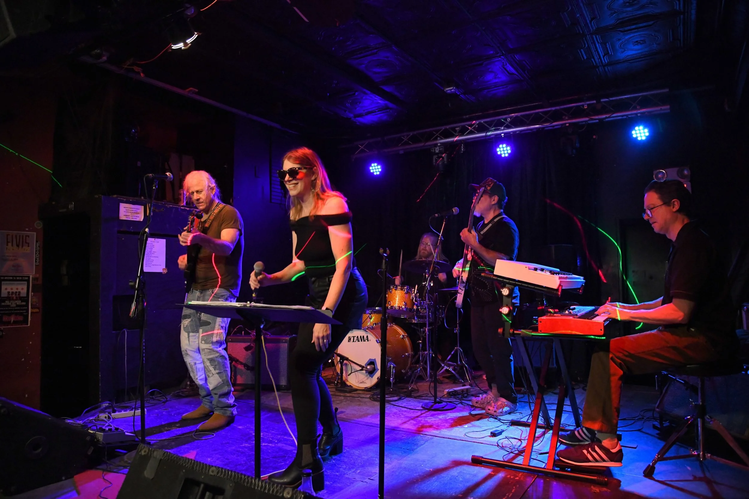 Mrs Smith and the Present at the eclectic and NO COVER Gallery Cabaret. Music starts at 9pm and we hit promptly at 11:00 PM. Garrett makes all the bands sound soooooooo good! And we get to play with our friends GO TIME